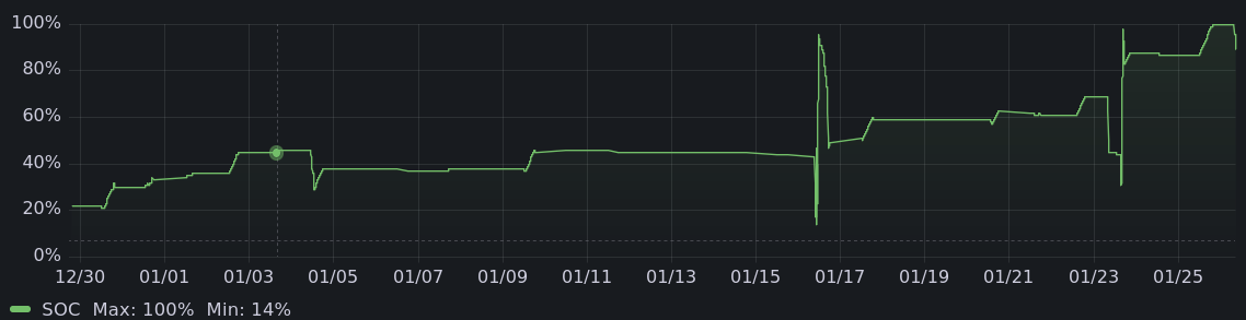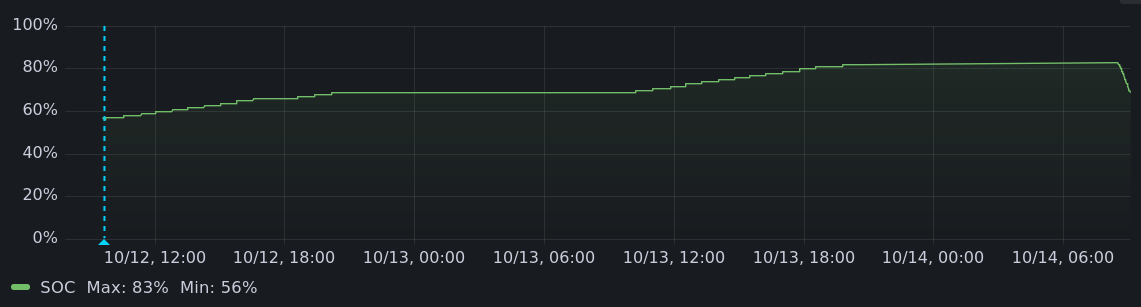 diff --git a/blog/entry/offgrid_electric_car.mdwn b/blog/entry/offgrid_electric_car.mdwn index e4d2e80d..8e2d3c81 100644 --- a/blog/entry/offgrid_electric_car.mdwn +++ b/blog/entry/offgrid_electric_car.mdwn @@ -8,7 +8,7 @@ Still, it was the right time to take a leap to offgid EV life. My existing 1 kilowatt solar array could charge the car only 5 miles on a good day. Here's my first try at charging the car offgrid: -[[!img pics/offgrid_ev_charging/proof_of_concept_charging_from_1_kw_solar_at_6_amps.png size=640x caption="first feeble charging offgrid"]] +[[!img pics/offgrid_ev_charging/proof_of_concept_charging_from_1_kw_solar_at_6_amps.png size=1024x caption="first feeble charging offgrid"]] It was not worth charging the car that way, the house battery tended to get drained while doing that, and adding cycles to that battery is not